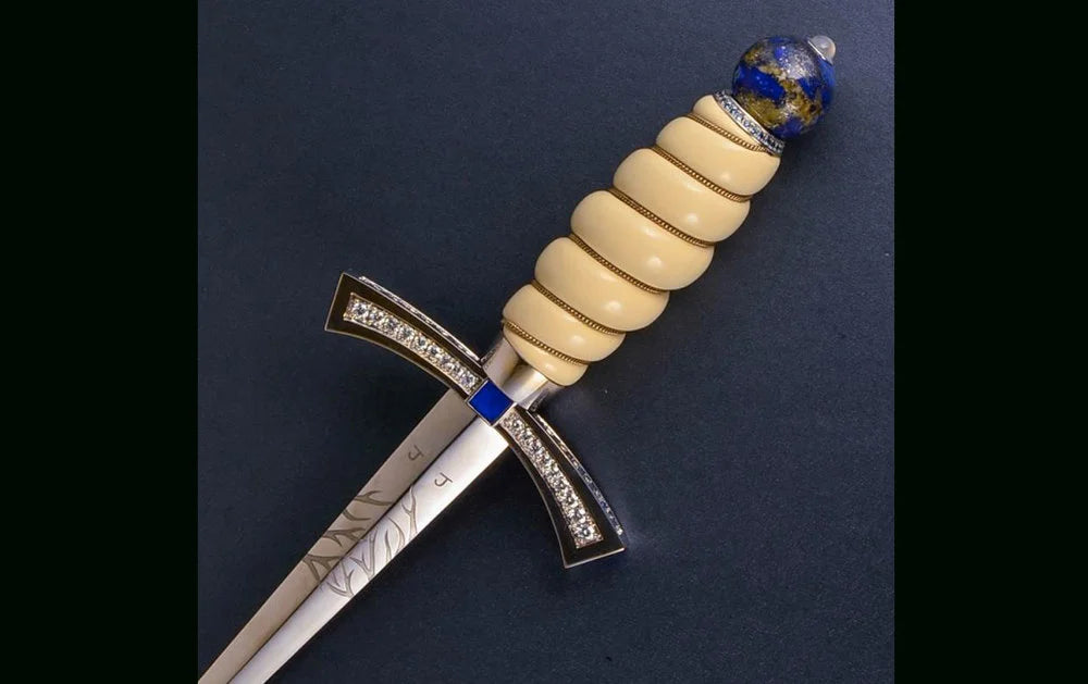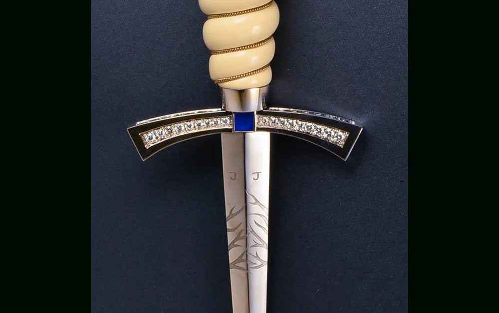 Jagger designed the dagger in 18-carat white gold, diamonds, sapphire, lapis lazuli, and mirror-polished carbon steel. A limited number of these ultimate ice daggers were created, each with a retail value exceeding $250,000 and sold at a select number of world-famous retailers, including Harrods in London.