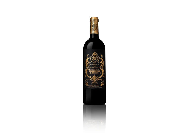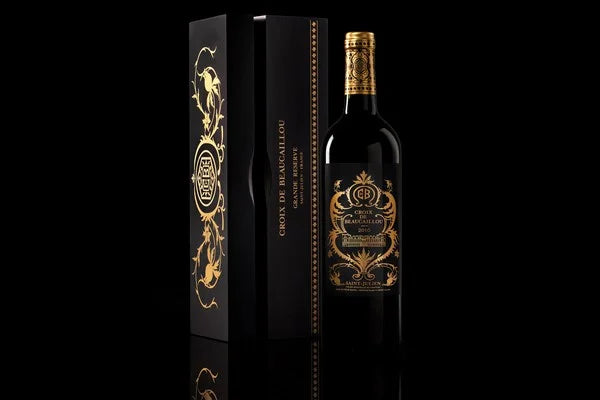Jade Jagger was enlisted to re-position La Grande Réserve Croix de Beaucaillou, a prestige cuvée from Bordeaux’s Château Beaucaillou. The brief was to repackage the wine with a new logo, label, and capsule, and to also design a window display system for global outlets.