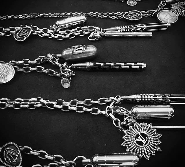 Collaborating with Louis Vuitton's Men's Style Director - Kim Jones, Jade Jagger designed and produced the mens jewellery collection for Louis Vuitton AW16.